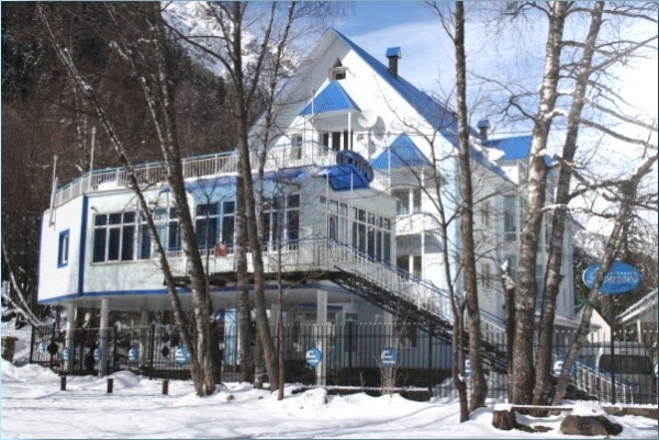 Гостиница находится в самом удобном месте – в центре поселка. Отсюда недалеко до подъемников. Есть возможность взять напрокат оборудование для катания, сходить в баню, сауну, сыграть в бильярд. На территории есть зал с VIP-обслуживанием, интернет-клуб, стоянка для автомобилей и зал для конференций.