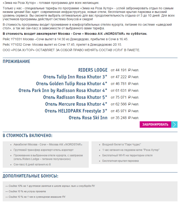 Какие Роза Хутор горнолыжный курорт цены предлагает на прокат оборудования, жилье и другие услуги узнавайте на официальном сайте