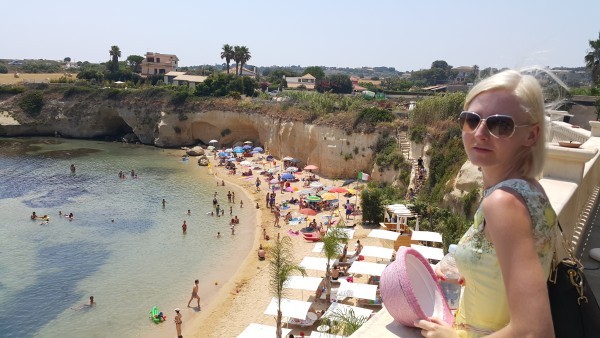 Мы не стали купаться на каменистом пляже, а отправились на песчаный. Время близилось к полудню (самое то отправляться на пляж))) На 15.00 мы записались на трансфер в Сиракузы.
