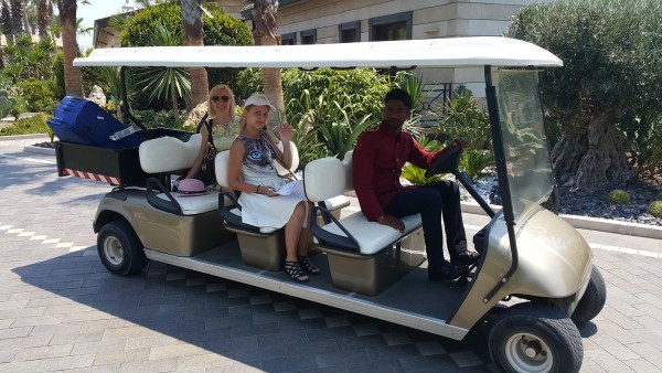 На территории отеля оборудованы дороги для проезда персонала на транспорте: так как вилл много, а горничных не очень, то им гораздо более удобно ездить на автомобиле и возить свой реквизит, скажем сменное постельное белье.