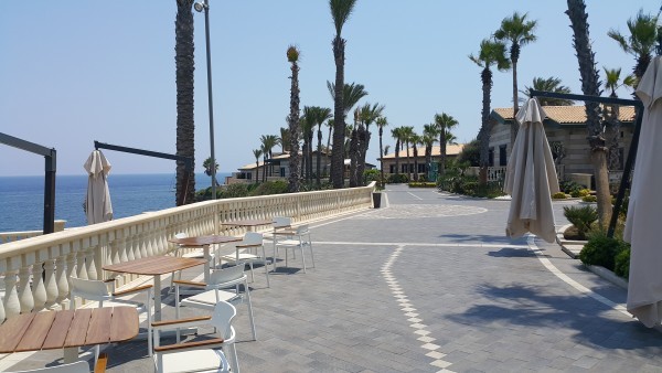 В отеле мы все таки пообедали на следующий день, когда уже не хотелось ехать в город, а хотелось вдоволь накупаться на красивом пляже и выпить бокал вина в шикарном ресторане с потрясающим видом на Средиземное море: