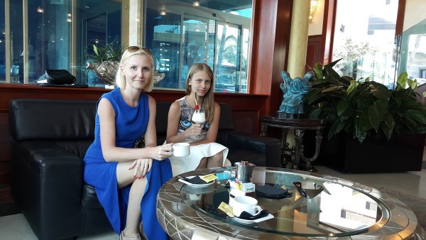 До трансфера оставалось минут 20 и я решила попить чая, а дочка — молочный коктейль.