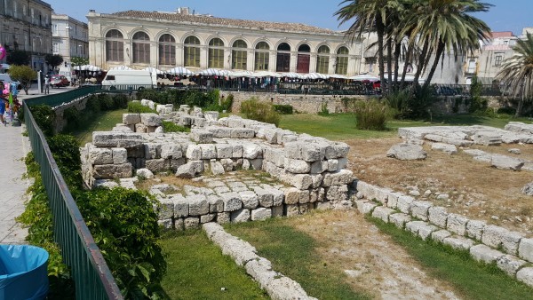 Почти сразу после пересечения бухты Сиракуз по одному из мостов (Ponte Umbertino или Ponte Santa Lusia) Вы выйдите на площадь Аполлона .
