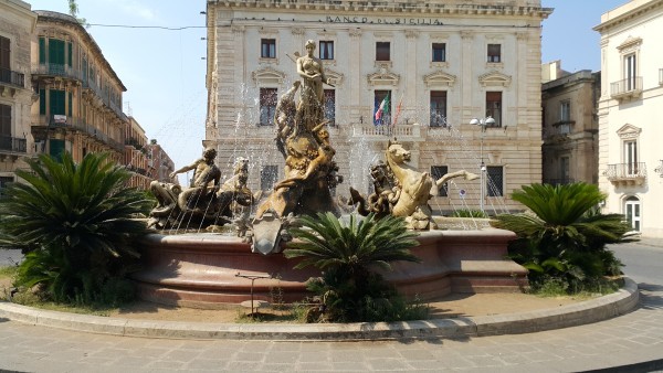 Сиракузы просто пронизаны легендами и мифами. Скульптор Д.Маскетти , создавший фонтан Артемиды в окружении нимф, тоже ,видимо, был поклонником легенд.
