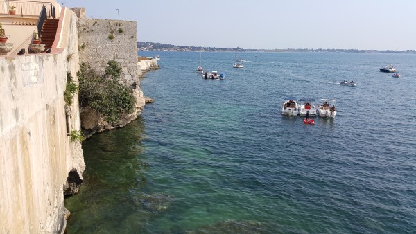 Спуск на пляж расположен прямо напротив исторического центра города Сиракузы — полуострова Ортиджа. Именно этот путь преодолевает катер во время трансфера, о котором я буду рассказывать дальше в нашей статье.