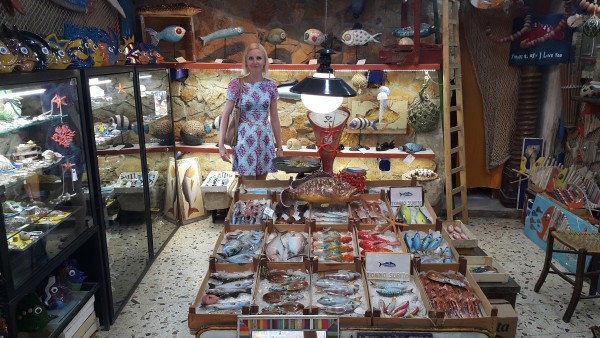 Среди необычных сувениров следует отметить керамических морских обитателей: мы нашли магазин в котором были всевозможные рыбы, моллюски и ракообразные из фарфора по размеру и цвету приближенные к своим настоящим прототипам: