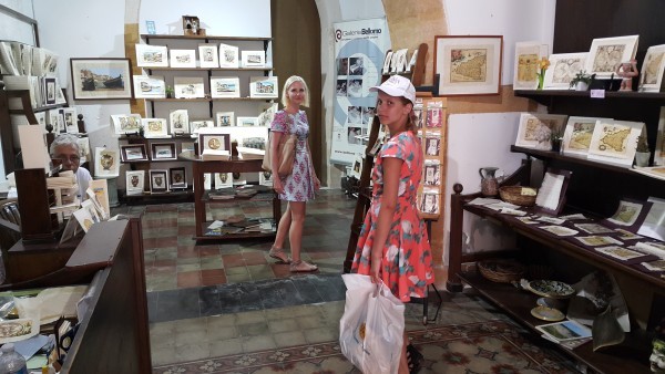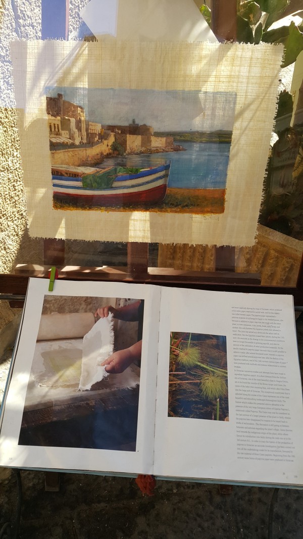 Мы поговорили о фонтане Аретузы и растущем в нем папирусе, но не показали как он выглядит уже в готовых изделиях. Недалеко от фонтана есть магазинчик, в котором изображен весь процесс изготовления и представлено множество красивых изделий из папируса на любой вкус и кошелек: