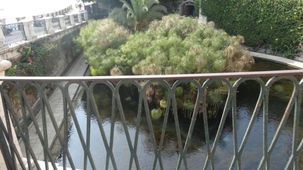 Кстати говоря, даже если не знать где находиться фонтан Аретузы и ничего не слышать о папирусе, то пройти мимо не получиться хотя бы потому, что здесь ежедневно толпятся туристы, сведущие в этих вопросах, поэтому любопытство обязательно одержит верх и вы остановитесь, чтобы рассмотреть эту странную достопримечательность.