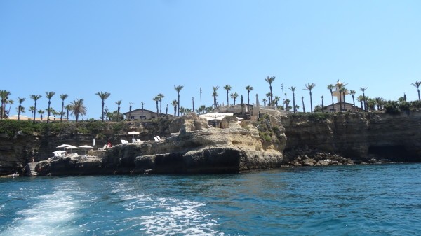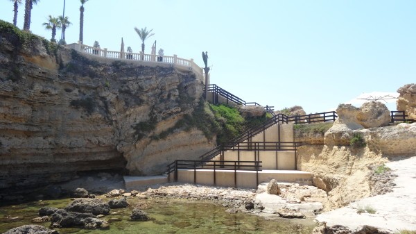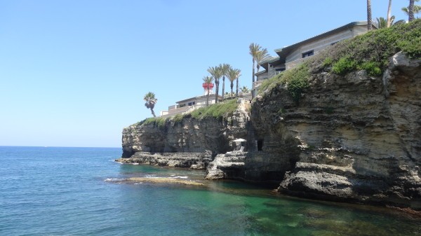 Прибрежная линия очень живописна, по периметру насажены высокие пальмы, а маленькие виллы гармонично вписываются в пейзаж. На больших каменных утесах расставлены лежаки и зонтики, а в воду можно как спускаться по специально оборудованной лестнице, так и прыгать с высоты .