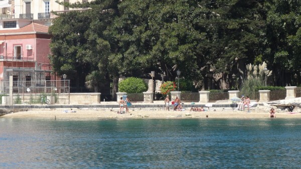 А вот и пляж, на котором уместиться весьма скромное количество людей, это при том, что пляж никак не оборудован , да еще и находиться в порту….То есть плавать придется в одной гавани с многочисленными катерами и яхтами побольше…