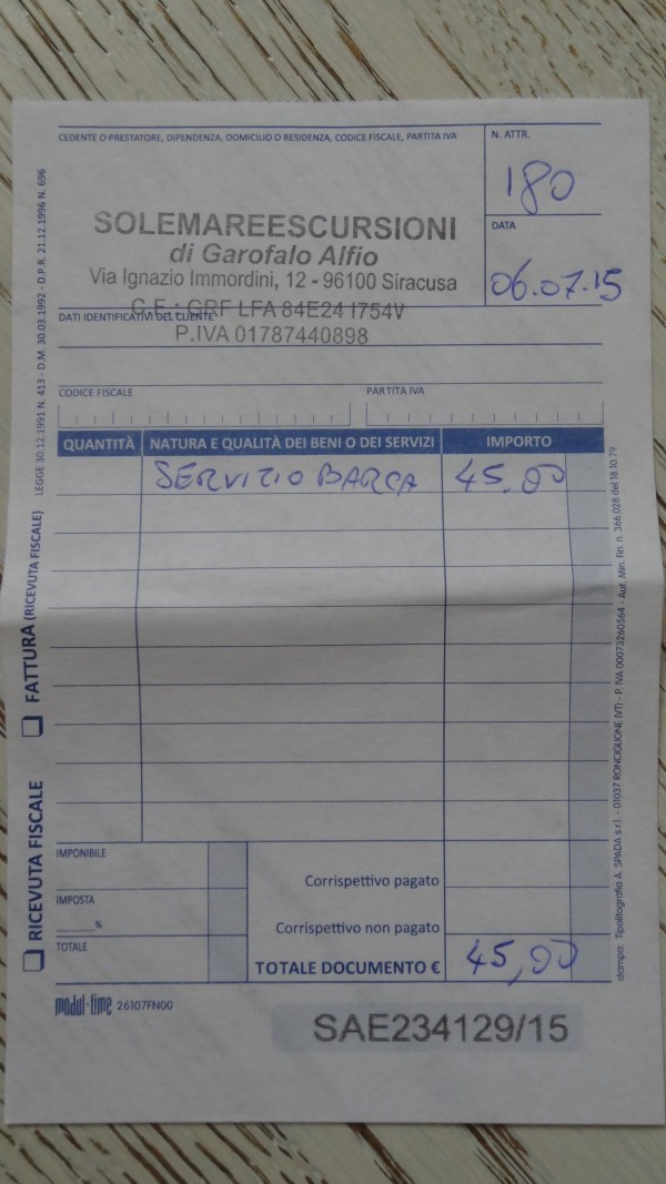 Как я уже писала за 20 евро Вам отвезут туда (в Сиракузы) и обратно (в отель) на катере, но не совсем в любое время и не всегда за 20. Если компания собралась в количестве трех человек, то поездка обойдется по 15 евро с человека. А позднее возвращение из города (после 20 часов) предполагает доплату по 10 евро с каждого человека.