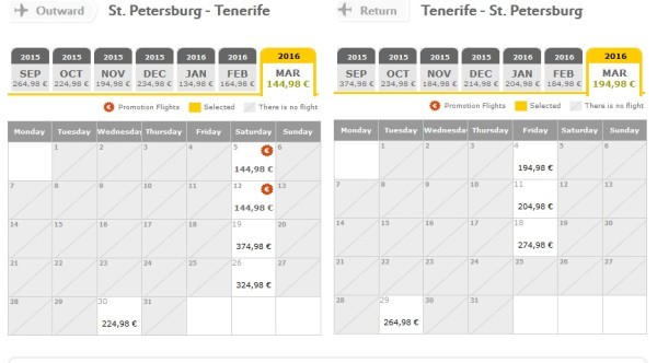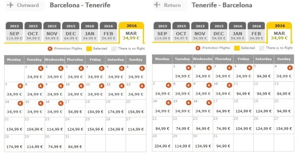 Например, 1 марта вылетаете в Барселону за 84,99 евро, гуляете там до 5 марта, а 05.03. вылетаете на Тенерифе за 34,99 евро, обратно можно отправиться 15.03 за 34,99+94,99 евро. Итого дорога обойдется в 249,96 евро, что даже дешевле, чем отпуск без прогулки по Барселоне и познавательней.
