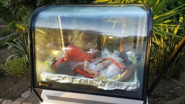 Вот в таком прозрачном холодильнике посетителям демонстрируется свежепойманная рыба, которую можно выбрать себе на ужин.