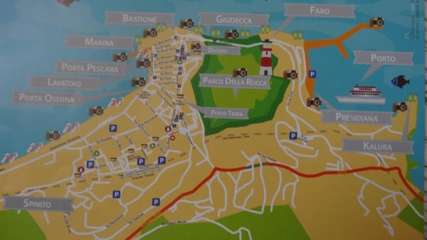 Хорошенько подкрепившись и купив 3 бутылки воды в дорогу (по одному каждому) мы двинулись в гору под красивым названием Ла Рока. Начало пути — площадь Гарибальди (P.zza Garibaldi)