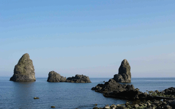 Однажды на Этну высадился Одиссей в поисках провизии. Одиссей со своими спутниками дошел до пещеры в Ачи-Кастелло, в которой жил циклоп Полифем, любимый сын Посейдона. В это время циклопа не было дома, зато еды в его жилище было предостаточно. Друзья плотно покушали, выпили вина, принесенного с корабля и стали отдыхать. Но вдруг вернулся циклоп, которому не понравилось то, что незваные гости воспользовались его отсутствием и съели его обед. Он не побрезговал и разорвал нескольких моряков и тут же их проглотил. Моряки спрятались от страшного людоеда. И Одиссей придумал план спасения. Моряки предложили циклопу испробовать вина. Полифем выпил угощения и остался очень доволен, но так как вина раньше ему не приходилось пить, то он не знал о том, что может произойти, если злоупотребить коварным напитком и он уснул. Пока циклоп спал, моряки наточили край найденного в пещере бревна, обожгли его и воткнули циклопу в единственный глаз. Полифем вскрикнул от боли так громко, что на его зов сбежались циклопы из всех соседних пещер . Они стали спрашивать его кто его обидел и лишил глаза. Циклоп в ужасе выкрикивал Удисс. Улисс — это имя Одиссея на европейский манер , которое обозначает Путешественник, но Одиссей представляясь циклопу изменил букву в своем имени и назвался Удисс, что означает уже не Путешественник, а «Никто» . Циклопы тогда решили, что Полифем сам лишил себя глаза и в недоумении разбрелись по своим домам. Полифем без единственного глаза и помощи своих друзей остался с непрошеными гостями в своем жилище. Но несмотря на незапланированное вторжение он должен был продолжать заниматься своим хозяйством и как раз подошло время пасти коз и овец. Но как же ему было выгнать наружу скот и оставить внутри моряков, чтобы поквитаться с ними?! Тогда он решил выпускать овец и коз по одной, чтобы случайно не освободить пленников. Он осторожно откатил камень, преграждающий вход в пещеру . Но моряки были находчивые и привязали себя к брюху животных и так покинули пещеру Полифема. Разъяренный циклоп выбежал из пещеры и стал бросать в моряков камни, которые и по сей день можно увидеть на Побережье Циклопов (Riviera dei Ciclopi) , недалеко от Катании.