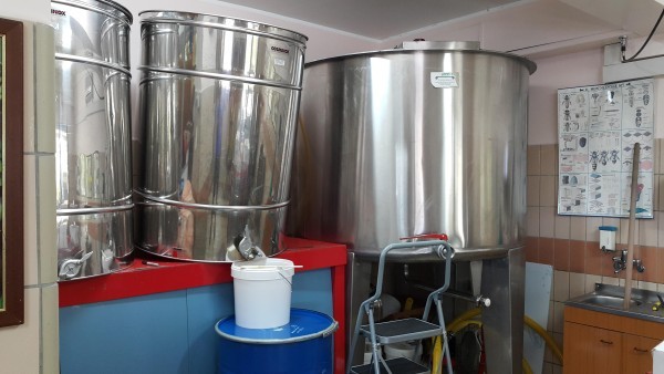 А это демонстрационный зал, в котором показан процесс производства меда с момента , когда с пасеки привозят заполненные соты и до момента выхода готового продукта.