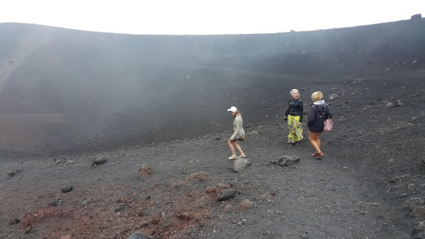 Повсюду на краях кратеров идут караваны людей, которые двигаются медленно и почти не разговаривают между собой. Здесь наверху каждый входит в мистическое гипнотическое состояние и думает о своем. Но что бы не происходило в головах блуждающих вдоль бескрайних кратеров и лавовых полей, здесь каждый чувствует свою беспомощность перед неуправляемой человеком стихией.