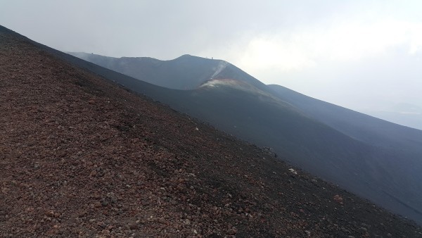 Так как подъем на Этну стоит денег, причем не маленьких, есть ряд туристов, которые наслаждаются кратерами Этны, расположенными как раз на отметке 1 900м, например, всеми любимый кратер Сильвестри, который бесплатно можно осмотреть со всех сторон, даже изнутри) Он извергался в 1979 году и с тех пор он больше не беспокоил сицилийцев. На фото внизу по центру на кратере еле заметные вертикальное ниточки — это люди, которые решили остановиться на этой отметке и не продолжать путь. Мы же твердо приняли решение не останавливаться на достигнутом и увидеть всю мощь и красоту самого большого вулкана Европы.
