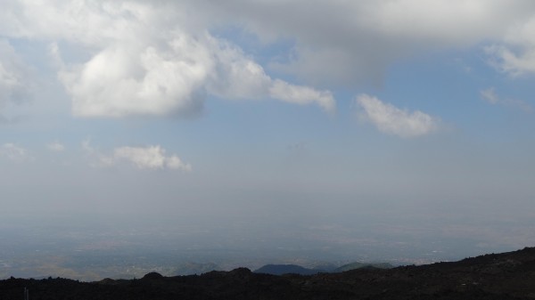 Если сидеть против движения и наблюдать подножье Этны, то можно разглядеть не только лавовые поля, но и нижние кратеры , например, уже упомянутый ранее Сильвестри.