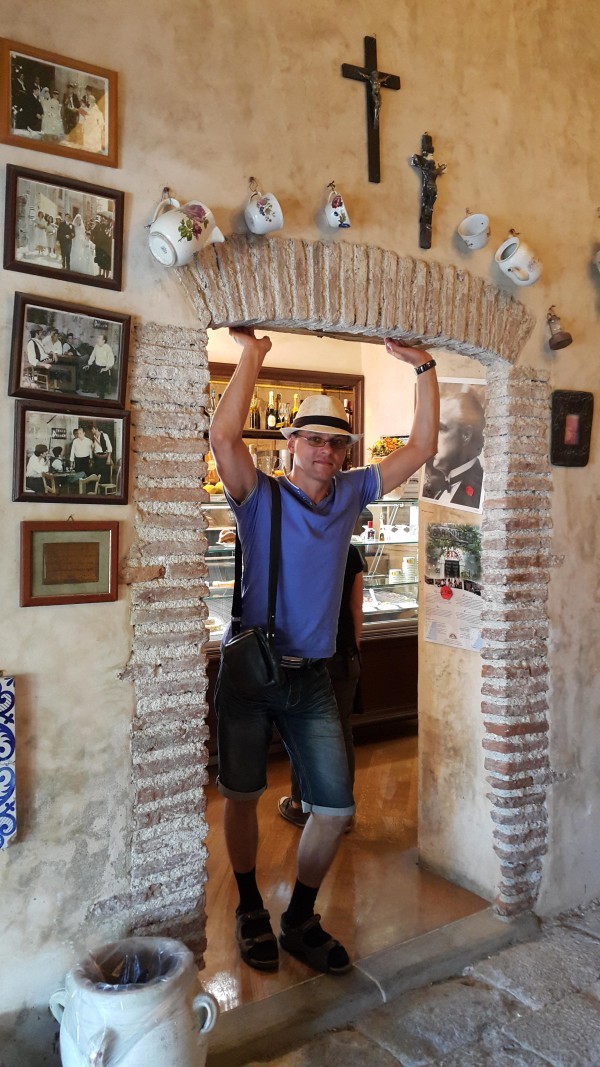 Начну свой рассказ с того, что если бы ни знакомство с замечательным гидом и прекрасным человеком Светланой, то мы бы никогда не увидели даже маленькой части описанных в статье мест. Вы, конечно, можете самостоятельно поехать в деревню Савока (Savoca) и выпить чашечку кофе в знаменитом по фильму баре Вителли, но Вы не сможете прикоснуться к истории и выйти на балкон дома Майкла Корлеоне или спуститься по лестнице, где он не раз спускался или подержать за руку хозяина дома, жизнь которого в корни изменилась после съемок фильма.